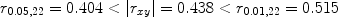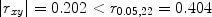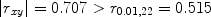 From the critical value of correlation coefficient ρ = 0 table [17] the two critical values, i.e., r 0.05,22 and r 0.01,22, were found to be 0.404, 0.515, respectively.